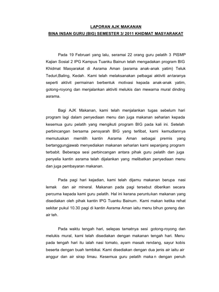 Ia juga merupakan sebahagian daripada cara hidup atau adat resam dalam masyarakat khususnya apabila adanya kenduri perkahwinan, perayaan, mahupun sesuatu majlis. Gotong royong ini sudah ada dalam jiwa masyarakat sejak dahulu kala dan diturunkan dari generasi yang satu ke generasi lainnya. Kegiatan gotong royong dalam masyarakat menimbulkan rasa sosial yang tinggi misalnya ketika terjadi bencana alam dimana semua orang berusaha guna mengumpulkan dana,memperbaiki infrastuktur yang rusak dan membantu mencari korban bencana. Download lagu laporan khidmat masyarakat 1.39mb dan streaming kumpulan lagu laporan khidmat masyarakat 1.39mb mp3 terbaru hasil diatas adalah hasil pencarian dari anda laporan khidmat masyarakat mp3 dan menurut kami yang paling cocok adalah laporan khidmat. Contoh laporan prakerin jurusan tkj di dcistem unpad. Menjaga sikap tidak sombong dalam hidup di masyarakat. Semangat gotong royong atau saling membantu tidak akan pernah lepas dari perilaku masyarakat indonesia. Contoh surat edaran resmi gotong royong. Mengindahkan pra sekolah ibnu khaldun. Gotong royong ini kemudian diperkuat sebagai salah satu nilai yang terkandung di dalam pancasila. Contoh minit mesyuarat khidmat masyarakat. Laporan aktiviti khidmat kemasyarakatan program bina insan guru tahun 2015 nama pelajar : Sekolah menengah kebangsaan mahang laporan pelaksanaan projek khidmat masyarakat kumpulan: